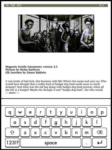 First of all, thanks a lot, baf, for this excellent port. I was looking for an if interpreter for kindle and I hadn't found any. The only if game I'd played on kindle was The King of Shreds and Patches, by Jimmy Maher, on a paid app for Kindle Fire (besides my kindle touch, I recently bought a Fire). But I wanted to play other text adventures, so I was googling when I found this thread. So, thanks again.