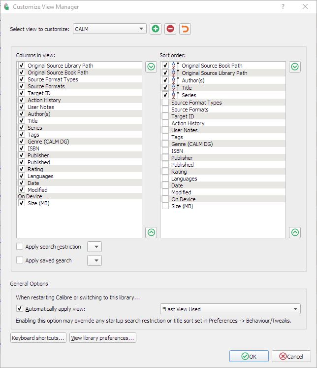 The CALM Template Target Library used to 'refresh' has been updated to always show that new Standard Custom Column. Unless you start with a clean slate, you will have to update View Manager yourself. #source_cover is a Yes/No custom column indicating whether the book has a cover in its original Source Library. Obviously, there are no covers in a CALM Target Library, just as there are no formats and no .opf files. DaltonST |