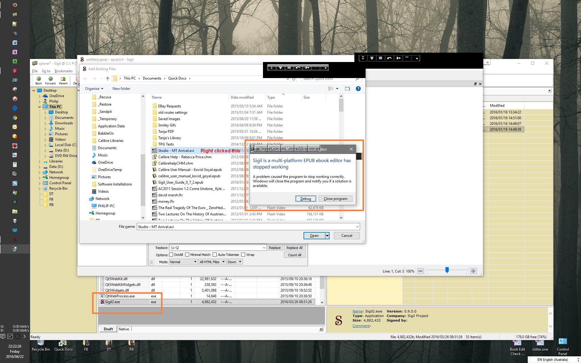 I discovered what causes Sigil 0.9.5 to crash, and indeed it is shell extension. But I've had it in the menu for so long (since NT4 at least) I had forgotten it wasn't part of Windows, all it does is to create a flat zip of a folder's contents - Zip Folder. ![]() FWIW - I reinstalled Sigil version 0.8.4. I think that's what I used when 'playing around' with adding media files to ePUB 2.0 a few years ago. That version of Sigil doesn't crash when I right click on a file in the Add Existing Files->Open File dialogue when Zip Folders is enabled. However the issue has been rendered moot. Yesterday my colleague demonstrated a different approach, rather than creating multimedia epubs, use an android application that pulls information down from the cloud, stores it, and presents it on demand. We've decided to go with that rather than EPUB 3.0. But not because of this problem, I hasten to add. BR Last edited by BetterRed; 04-23-2016 at 10:38 PM. |