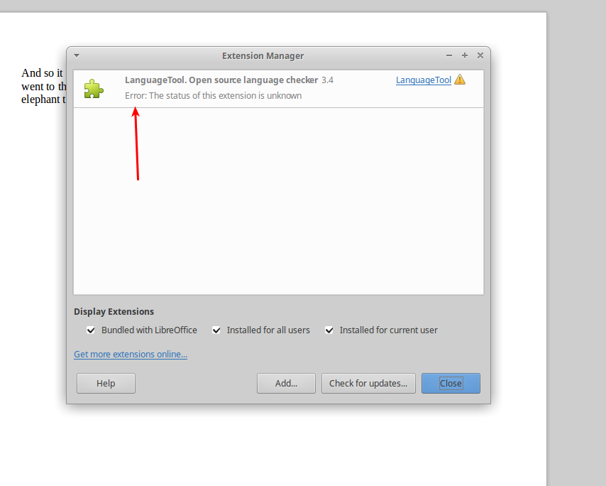 @Gregg Bell: Try the stand-alone LanguageTool version. If it works, ask in an Ubuntu/LibreOffice forum for help. Also enter the following command: Code: