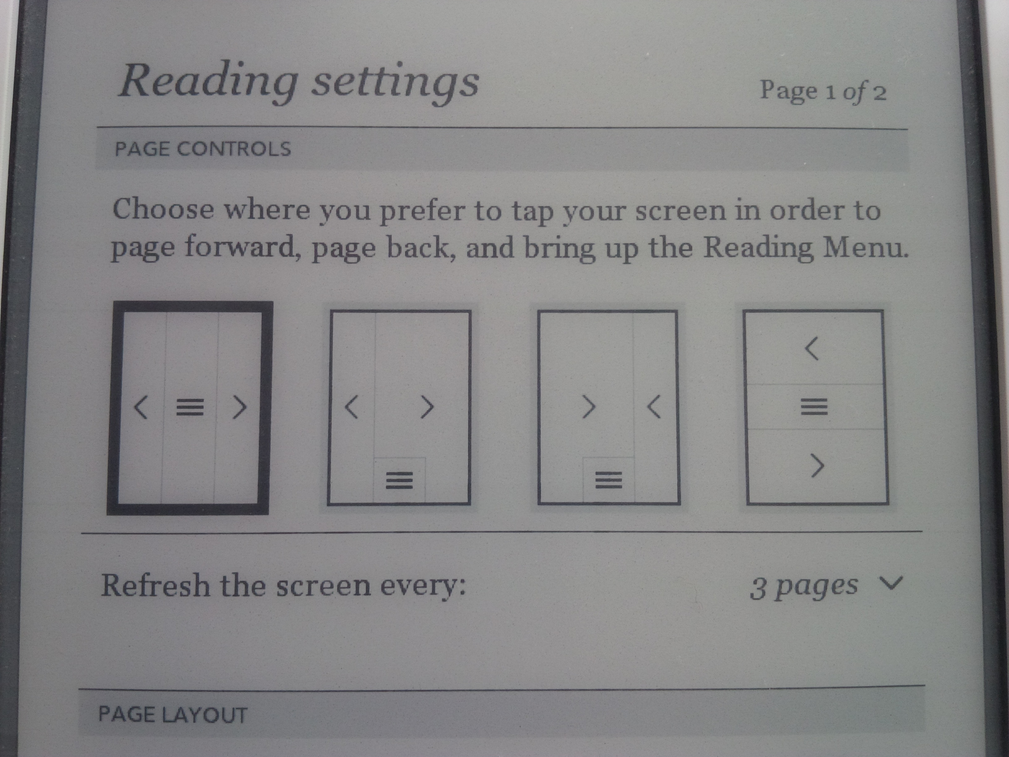 Kobo has more options but no true left handed one I think .i.e. no mirror image of the default settings If the reader apps authors can fully cater for this, Why can't the e ink makers ? |