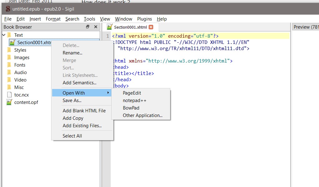 I cannot find any Open With feature in Sigil. Nothing in the help files. How does it work ? |
