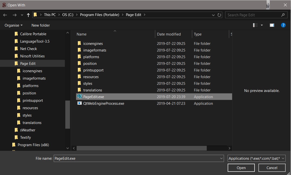 Right click an xhtml in the book browser, viz. To put it the list, select "Other applications" and then browse to where you installed PageEdit, and select it e.g if you want a button to click, you can do it via Preferences too. BR |