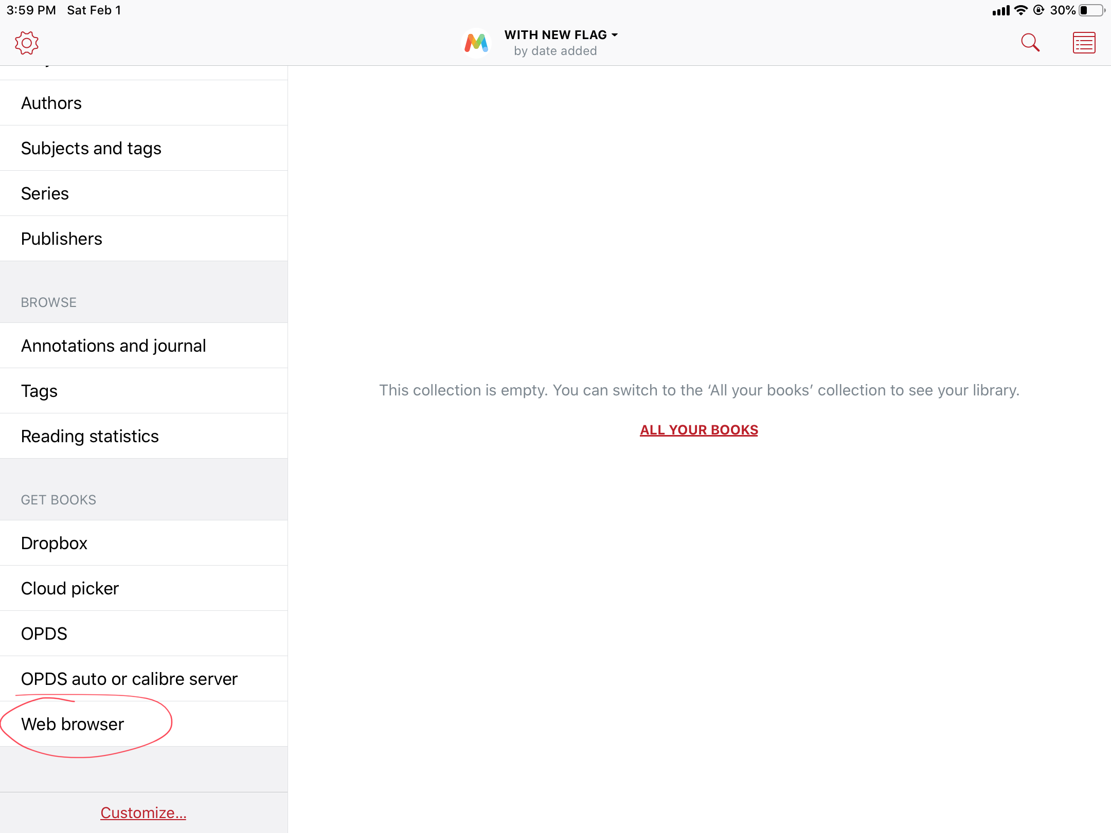 Holy Toledo Batman!! I totally forgot about the in-app browser! I had it turned off because I use OPDS and dropbox.