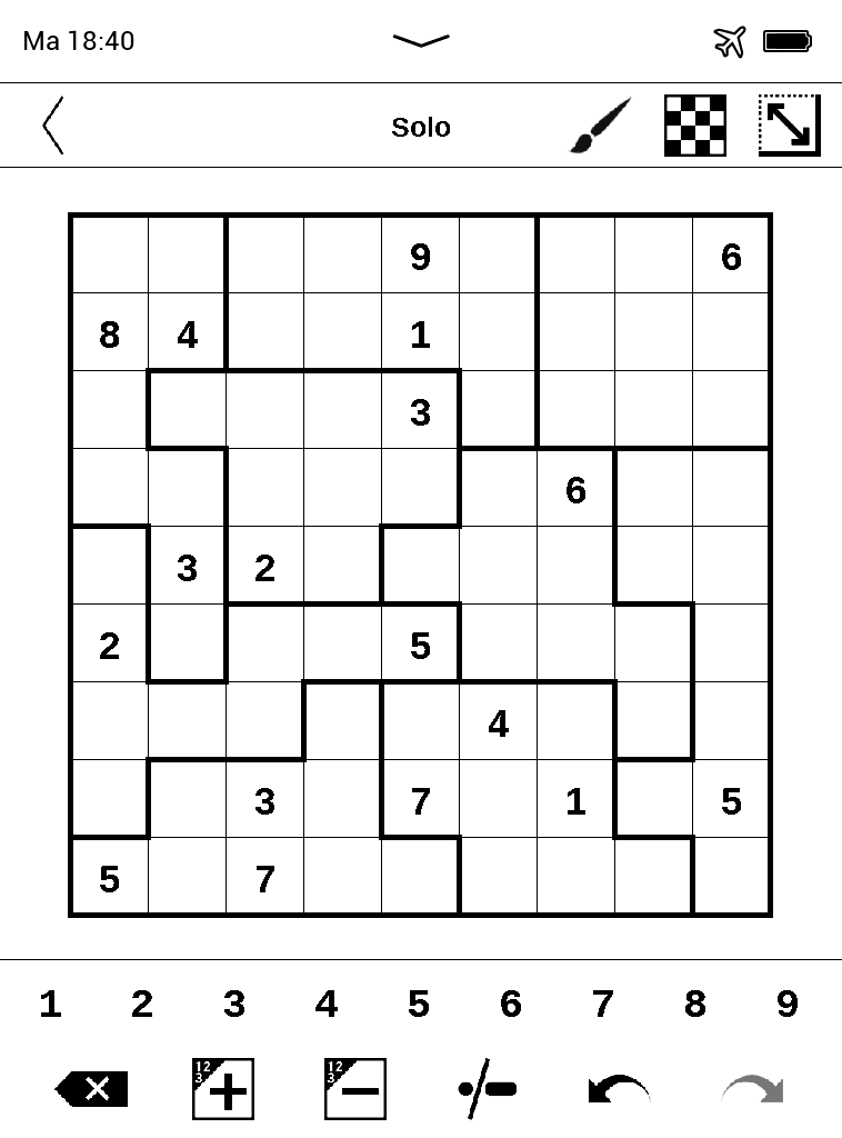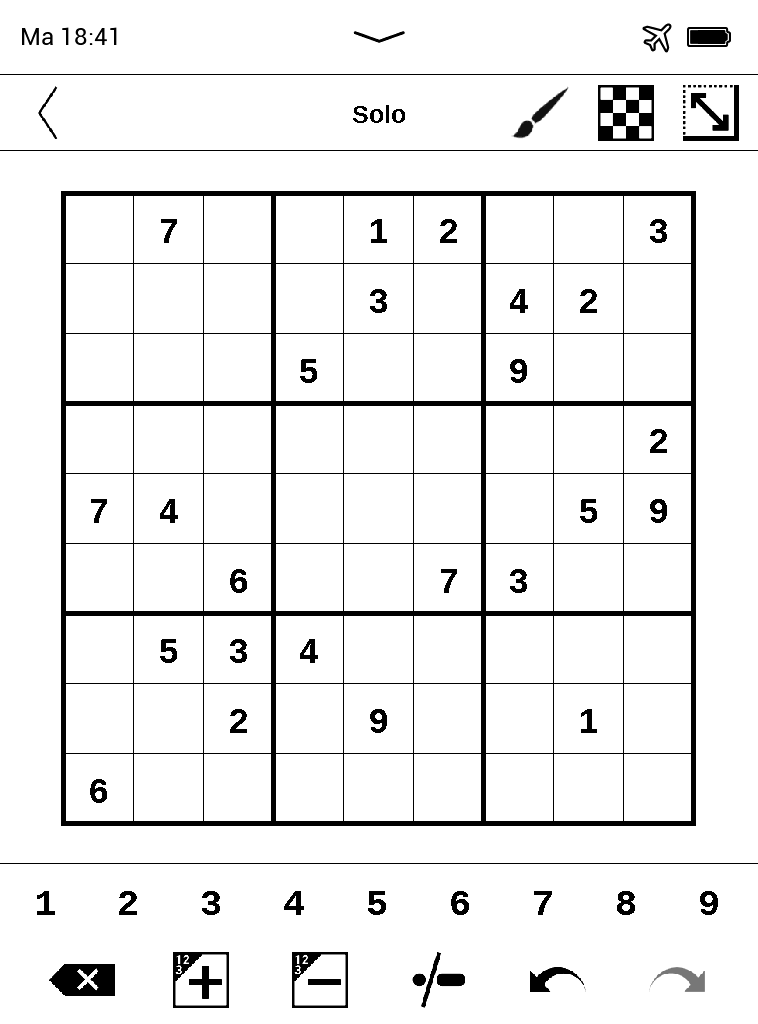 Thats looks actually quite ok, in comparison to other devices with a different resolution. The menus itself are rather big, but otherwise its okay, especially the game chooser looks usable now? Regarding the minus button on solo: That button is actually doing something else. The '+' button is adding all possible clues that don't contradict already placed numbers. (contradict as of row/column/area) You can use the '-' button after you placed some numbers. Pressing '-' will then remove from all hint marks those that aren't compatible with the full numbers anymore. I introduced these two buttons because putting in / removing clues on the game criteria (row/column/area) is just too tedious for me, I want to concentrate on the challenging aspects of the game. For a future version I am planning to introduce UI configuration for each game, so that one can configure if these buttons are present or not. Try it out like this: start a game by filling the marks with '+', then play a little bit, and then press '-' after you have filled in some numbers. It should become clear what this button is doing. Last edited by GerReader; 04-26-2021 at 02:26 PM. |