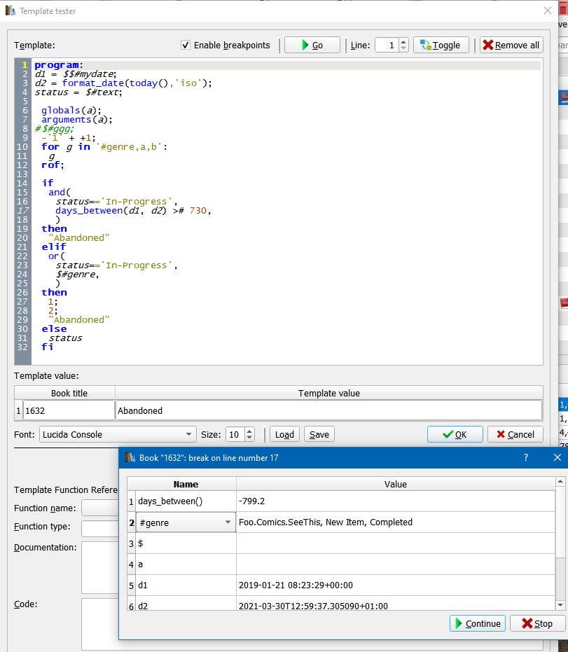 The issue I had with that template is probably what I would find breakpoints useful for, to make sure that when checking a value it actually is what I intended to check for (730 days instead of -730 days).