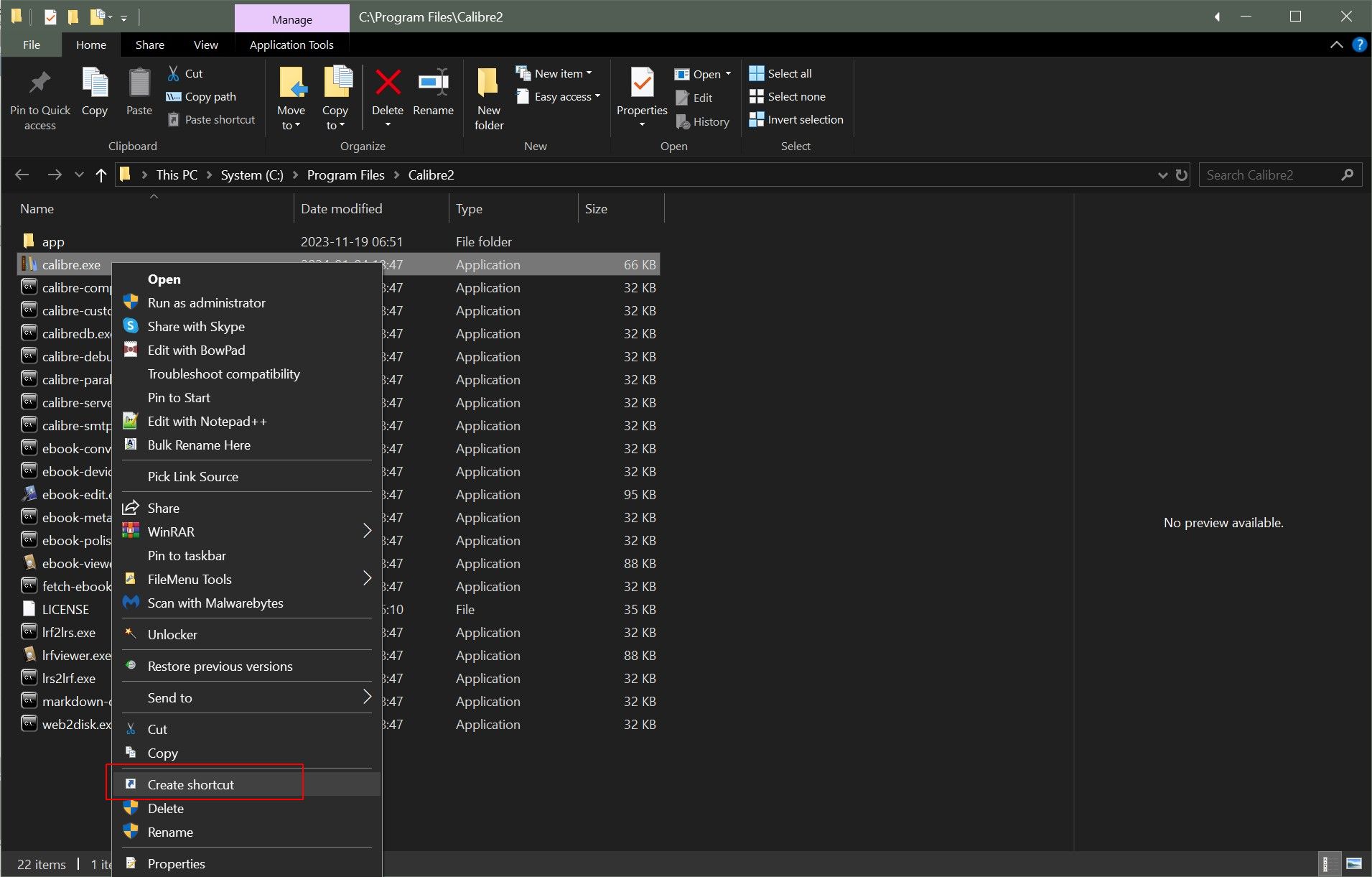 The calibre command will do the same with a shortcut to a file as it does with a direct path to the file… which is as it should be. How do you start calibre? I would guess via a shortcut on the desktop, taskbar or start menu… or ????. What happens of you start calibre directly, you do that by double clicking C:\Program Files\Calibre2\calibre.exe? If that works I suspect there's something peculiar with the shortcut you're using, in which case I suggest you remove it and create a new one: BR Last edited by BetterRed; 01-12-2024 at 04:53 PM. |