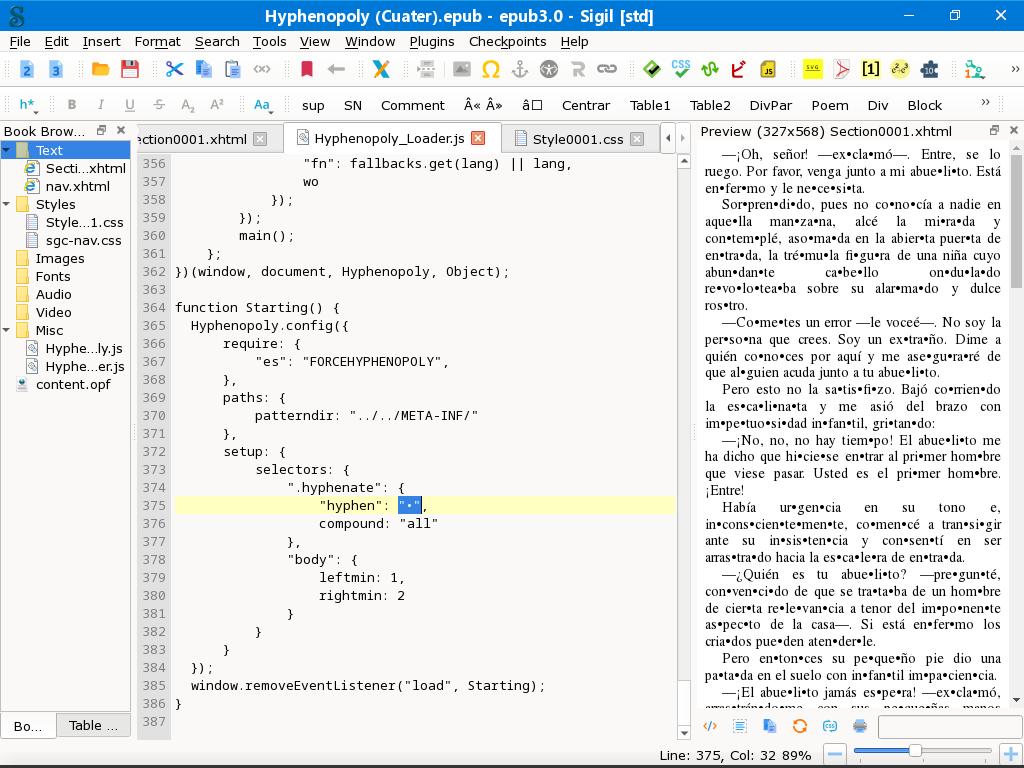 This is all on my Mac. Bibi reported no errors of any sort. No errors were printed to the screen and no errors appeared in the javascript console. So I can not tell if things are working or not. Please look at this screenshot and tell me if Hyphenopoly is properly working as I can find nothing else that indicates any failure. See the attached screenshot. I see plenty of hyphenated words and the full justification looks good to me. How could you tell previously it was not working in Bibi reader? Last edited by KevinH; 08-07-2025 at 10:05 PM. |