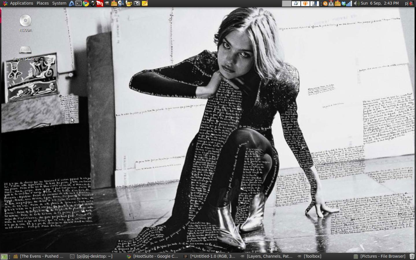 A bit late replying, sorry, and I've no idea who the girl is. I can't even remember where I picked up the wallpaper from. Ubuntu is so much more comfortable for me than any other OS. Just feels right.
