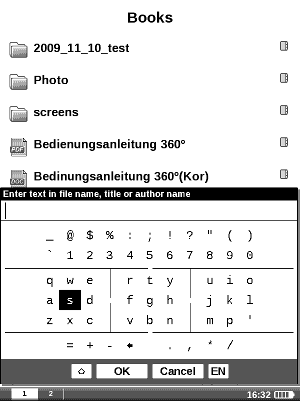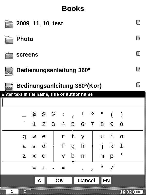 For testing the other formats, you can find free books in just about every format ever made at Munseys.com. I'm a big fan of FBReader on OpenInkpot and it sounds like the version of FBReader used in the PB360 is very similar (a big plus) but it is unclear if the imminent addition of ADE will displace it. Anybody know if FBReader will remain in the Adobe-fied release? |