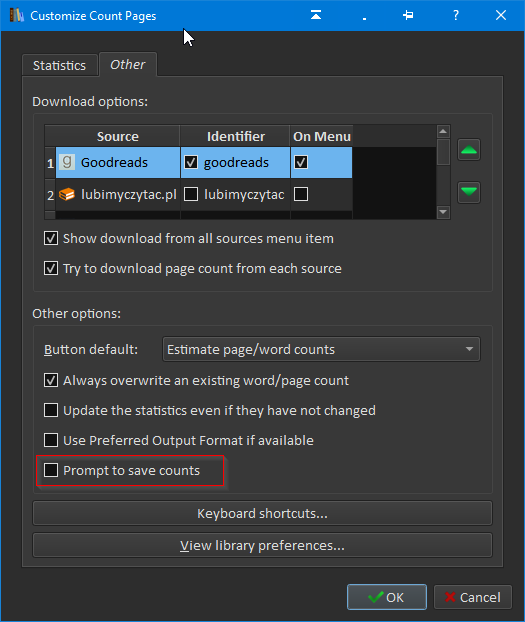 When Count Pages runs from FanFicFare, it seems to follow the prompt in the settings.