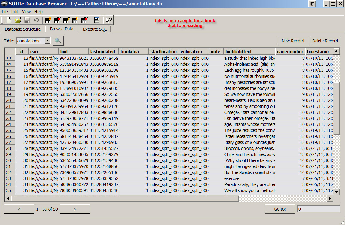 ha! That's sqllite format. that seem to contradict this https://www.onyx-boox.com/support/1-...rt-annotations Try this: copy the file on your PC and from there try to open it with the aplication you will download from here https://sourceforge.net/projects/sqlitebrowser/ Forgot to say..rename the file to mybook.pdf.sketch.db (add extension .db) here is what you might see. Alternatively you can send me an exemple of a file annotated, highlithed an with sketches and I will have a look at it. PM me if you want to do that. One more note: I keep saying annotations, in fact it is highlighted text that I am looking for. That is, you read, you highlight something, that is copied automatically in the file you mentioned and I would like that to be exported. I also own a eeeNote and and there is a guy on tabletpcreviews.com who created an application to export sketches from the eeenote database and merge them with the coresponding PDF as layers. I can try to ask him for help and directions for doing the same for this if it is proved that we have the same sort of sketch storing ... To do that we need a small PDF with annotations a coulpe of sketches and highlights to begin with Last edited by PF4Mobile; 09-11-2011 at 10:18 AM. |