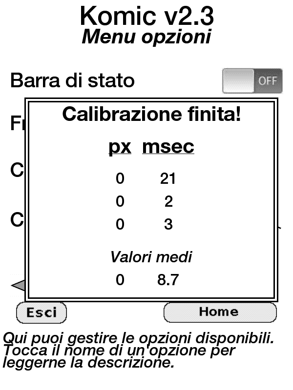 Thanks a lot for your build and for sharing with me! Calibration option is working and seems to be pretty solid. I decided to make the user touch 3 times a popup box following some instructions. Every touch stores the delay in time and space between mousedown & mouseup then Komic calculates the average. The swipe gesture is then activated ONLY if the user is moving his finger on the screen for more than the time/space stored before (plus a 10% tolerance). Otherwise, the gesture is interpreted as a touch. I tried it last evening and it seems to work fine. Moreover, the user can re-calibrate the gesture detection engine to suit its needings. I just need to play around with CSS (I hate it!) to make it nicer. NEXT: JSON for bookmarks and options (to be honest, I wanted to move options in a separate db but I always get a security error: it seems I can't create db on client-side) NEXT: jqgrid for bookmarks and deletions pages V2.3 will be release in the near (hope so) future and, ATM, users will have to readd manually bookmarks and options as the JSON-thing is going to be a huge change. PaperWhite support will still be last in my list as I can't really assure you anything about the compatibility. |