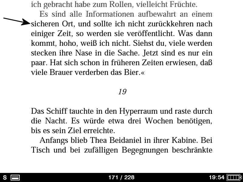 With the original code used in kbookPage.draw on both pages one line to much was masked. I thought I fixed this by changing max- / min-overlap. Tested this with PDF and LRF files, both with margin-cut on and off. Can you post screen-shots, please? Regards Mark |