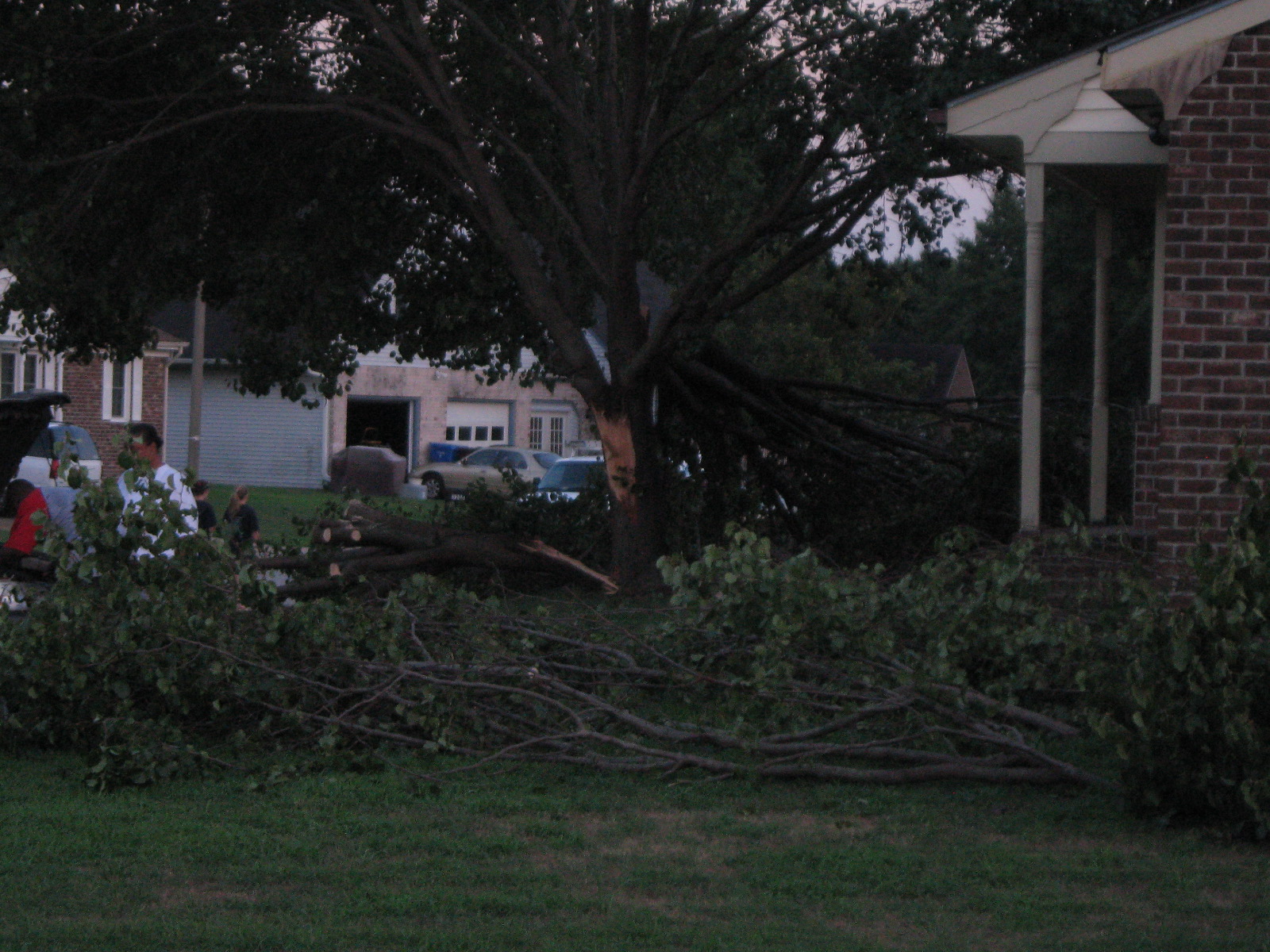 The neighbors across the street. (Click to enlarge) The neighbors on the corner (Click to enlarge) And this in in our back yard. Our weeping willow (which was toast before the storm began, but the limb was cracked off by the winds. (Click to enlarge) |