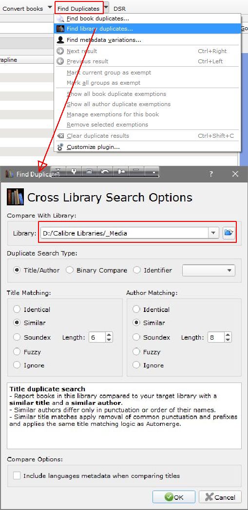 I like this plugin very much for a long time. Today I started to make Cross Library Search with Author/Title. Setting Title Matching to Fuzzy Author Matching to Ignore At the end a dialogue tells me how much books are duplicates, after pressing ok, the marked:library_duplicate is active and everything looks fine. But if I change it to: Title Matching to Ignore Author Matching to Fuzzy I get the dialogue which tells me, how much books are duplicates, but after pressing ok, marked:library_duplicate is not set and the books are not marked. Can anyone reproduce this? |