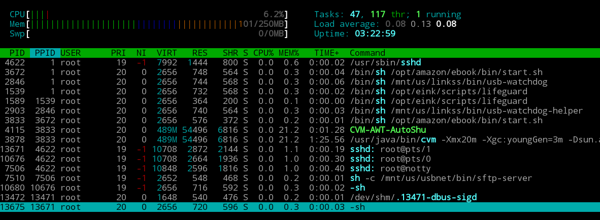 That the existing scripting would run under the new busybox. ![]() Well, somebody had to try the re-boot function, some time. Nice to know all of this work didn't turn in into a re-brick function. - - - - To answer the little mystery question would really require to break out the initramfs scripting for examination, but .... Somewhere in there, the "old" shell picked up the alias list. And / Or picked up the changes to the PATH environment variable. I would go with "AND" - since both are required to make the shell that is running (old or new) recognize a scripted command as an alias and be able to find the "new" busybox on the PATH. An initramfs script transfers control to the system that was setup with some version of: exec /bin/sh </dev/console >/dev/console ... ... ... or exec /init </dev/console >/dev/console ... ... ... With either a "switch_root" or a "pivot_root" command tossed in for flavor (which includes the basics of an "exec" call). I.E: The command shell running when the regular userspace is first hit from early userspace is "a chained continuation" not a "child continuation". (See the later quoted explanation of a "child" or "sub-shell" process.) So, the question gets promoted to: How did the "chained continuation" pick up the . .alias and the PATH= changes? Answer: From the fixed name initialization files that you mentioned earlier you had to add and/or alter. (The ones you noted a "stock" K3 does not have.) New question: Is this a bad thing? Duh... I don't know. I do know it is what we wanted to happen, sometime later after months of testing. Guess you left some skid marks on that part of the learning curve and maybe bump'd across the in-field a bit. ![]() Why did telnetd get started? Blame that one on lab126 slop. An embedded system under development very often has telnetd running in the image as a development aid. When ready for release - that telnetd may (often is) disabled. How? By removing the init rc.?? script to start it. By removing the iptables port 21 "hole". By removing telnetd from the system image. We know that lab126 did #2 above - we can read the iptables rules. Listing the old busybox features should tell us if they did #3 above. What they evidently did not do was #1 above. And when you provided (unintentionally) access to the new busybox with telnetd included, it started working again. Duh... Add a new input chain rule that does a -j accept for port 21 - then reload the iptable rules. Whoot! You should be able to telnet into the box from **any** network connection (unless you qualify the source in the rule). So much for the "I can't ssh into my K3" problem reports. Who needs it? (ssh, dropbear, etc, etc). Parts above are pure speculation - but it makes a story that hangs together. |