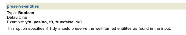 These are bad news. This explains why Tidy is so rigid. It's a pity because it has been conceived with a lot of configuration parameters. Maybe a Linux user better than me would know how to use the command-line tool. This one can be customized to tidy the xhtml files. |