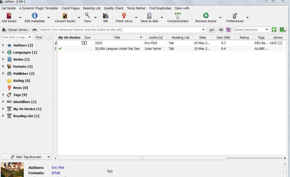 Remember that the Reading List plugin only updates the Auto populated lists when the device is detected as being connected, so if you drop a book from the device until you either disconnect / reconnect your device OR perform a "Sync Now" operation via the Reading List plugin, the list will not be updated and the colour of the row will not change.