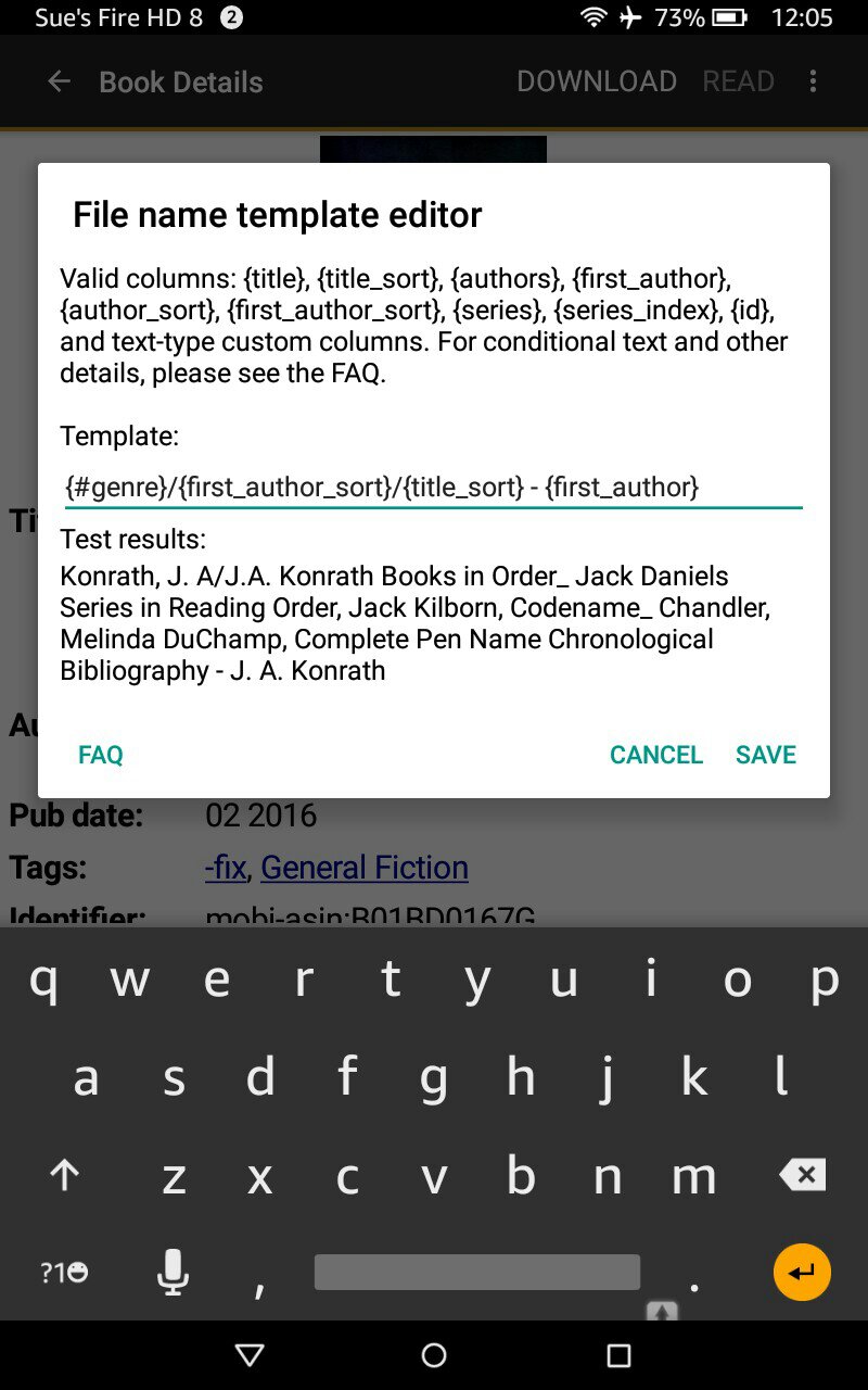 Confusion reigns and I have to confess my head's in a bit of a spin with all this. For day-to-day purposes I normally only use the Wireless Device transfer method but with alpha-tester hat on I thought I'd better try the Content Server method as well. (CC Cloud is not a practical option for me) Calibre GUI Customize Smart_Device_App has Save template: {author_sort} - {series}{series_index:0>2s| | - }{title} I've also set up a new CC template on Note3/Android 5.0/CC5.0.0.4: {author_sort} - {series}{series_index:%02d| | - }{title} In CC Settings - Filenames, I have checked only: - Use CC template everywhere - Replace existing book files If I transfer 2 books from the same Series, one via Wireless Device the other via Content Server I correctly get a 'matched pair' of filenames, namely Wireless: Galbraith, Robert - Cormoran Strike 01 - The Cuckoo's Calling.epub Content Server: Galbraith, Robert - Cormoran Strike 02 - The Silkworm.epub ... so far, so good. However, as I don't use CC Cloud, according to the FAQ here I should be able to use Solution 2. So I tried changing CC Settings - Filenames to check only: - Use calibre's file names - Replace existing book files Now transferring the same 2 books I no longer get a matched pair of filenames I get Wireless: Galbraith, Robert - Cormoran Strike 01 - The Cuckoo's Calling.epub Content Server: The Silkworm - Robert Galbraith.epub i.e. the Content Server has reverted to {title} - {authors} ETA: The CC template I created is still there Is Solution 2 no longer an option or have I missed something obvious? Last edited by jackie_w; 02-14-2016 at 06:37 PM. Reason: ETA |