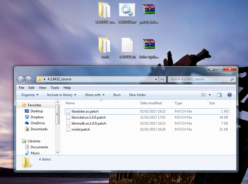 $ ls 4.3.8842.bat 4.3.8842.sh 4.3.8842_source kobo-update-4.3.8842.zip tools |
