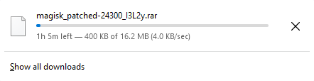 C:\>adb reboot bootloader C:\>fastboot flash boot magisk_patched-24300_nNAMf.img < waiting for any device > Sending 'boot_b' (16916 KB) OKAY [ 0.399s] Writing 'boot_b' OKAY [ 0.104s] Finished. Total time: 0.564s C:\>fastboot reboot Code:
