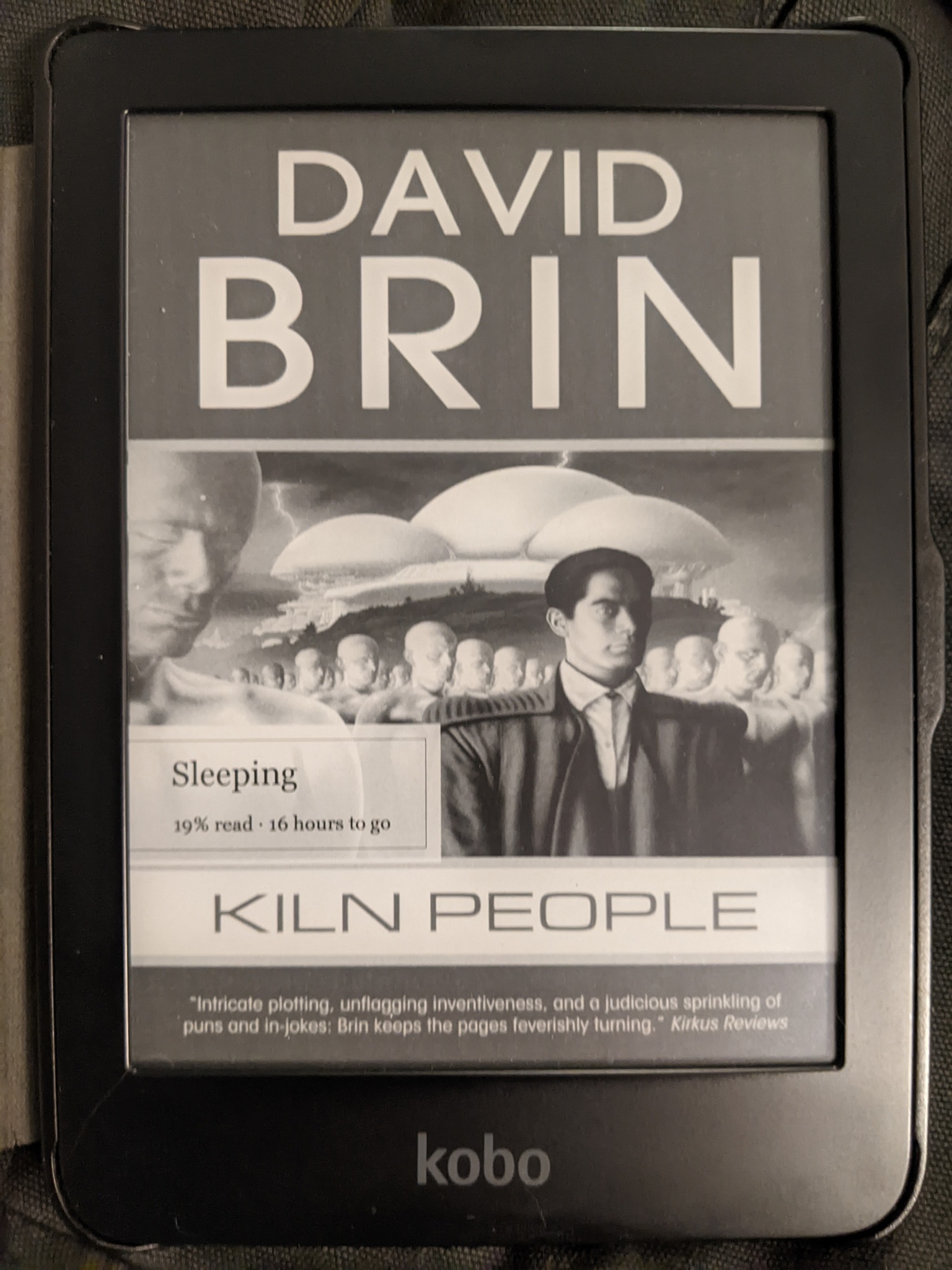 I'm reading David Brin's quirky sci-fi novel Kiln People, about a world where you can make clay duplicates of yourself that last a day, then upload their memories to yourself. So you can be two or more places at once. I've read it before and remember enjoying it, but don't remember the story specifics.