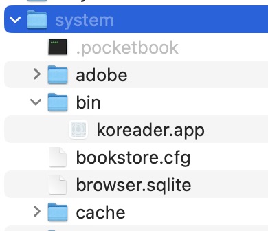 There is no hidden file in the application or bin directory, just the files extracted from the installation zip file (see screenshots). Hidden files are visible, though, otherwise I can't see the "system" folder on the Pocketbook.