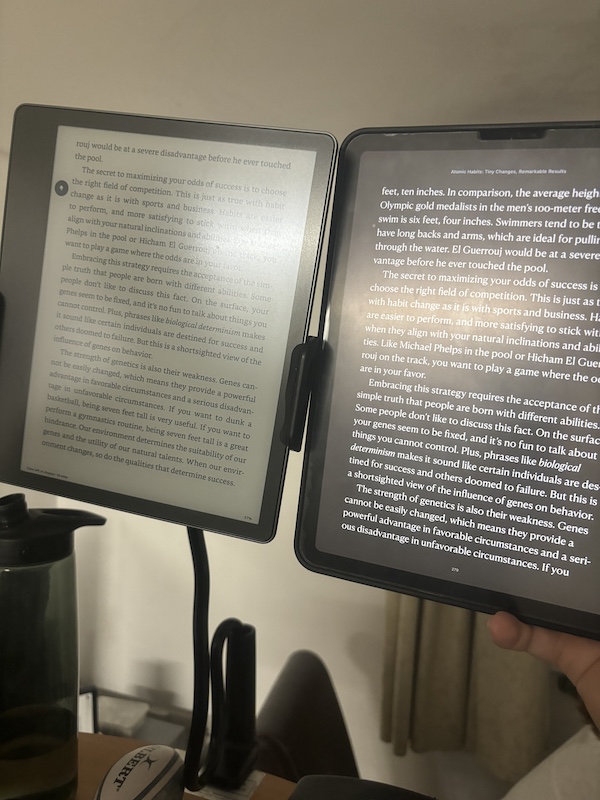 So I bought the Kindle scribe today and I've tried it for a few hours now but in comparison to my iPad A4 it doesn't seem to be much of an improvement, please see photo comparing The two