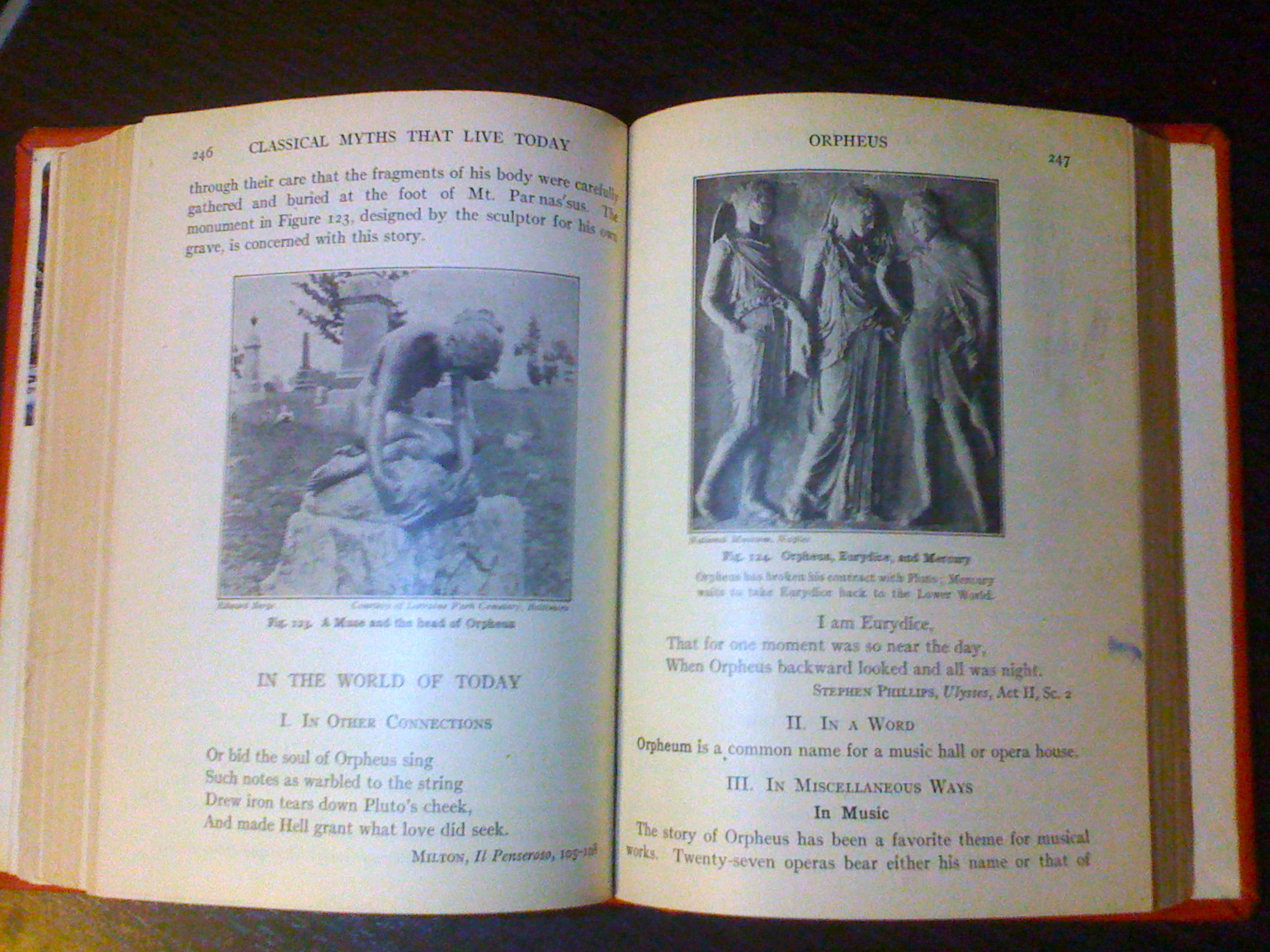 Now as I go older, 13, I came across 'Classical Myths That Live Today' by Sabin and brought it from my public library. I still have it today. Copyright 1927. Still has all of its pages. I would love to have it in ebook. So many b/w photos and drawings, it would look great on my Kindle. Last edited by pagansoul; 03-27-2009 at 10:45 PM. |