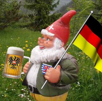 Liebe Schweizer, Österreicher und Luxemburger: Könnt Ihr Euch wirklich mit diesem Kerl identifizieren? Hier kommt vorsichtshalber die Alternative: Zwerg mit Deutschlandfahne und Schweizer Mütze, Österreichischem Bier und Luxemburger-Jacke.