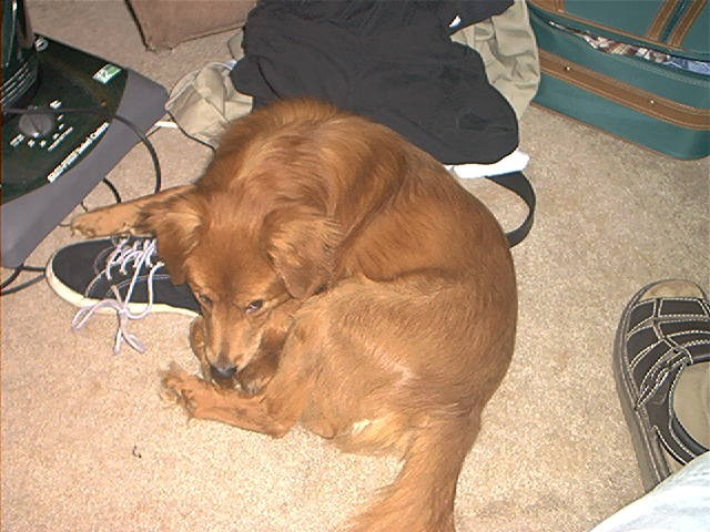 But yeah, it'd be great. I had a shelter-dog once that looked like a mini-golden retriever... temperamentally he was like one, too.. Very mellow, smart and sweet. I think he was a spitz/retriever mix. About 20-25 lbs.. Great, great dog. Ooo... I found some pics. |