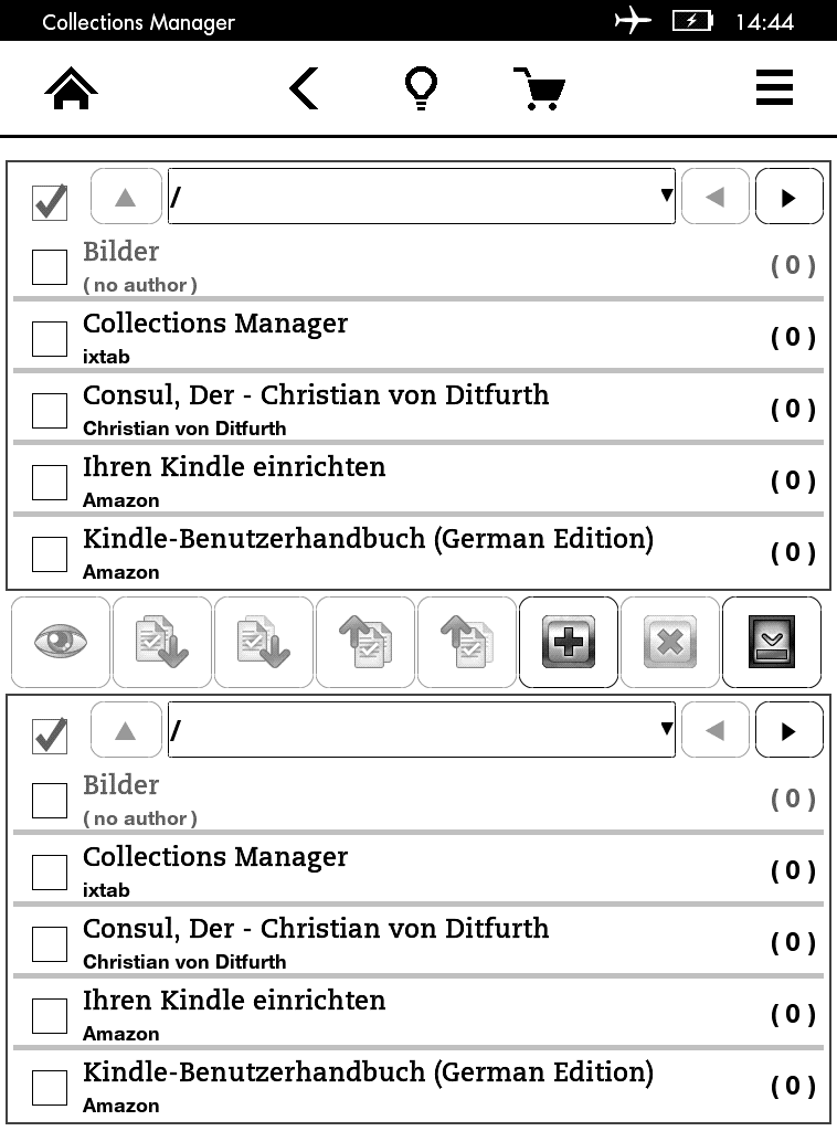 EDIT: Ooh, nasser's idea of alternating background color between odd/even rows is pretty neat too, and what GTK/QT does for this kind of stuff, although I have no idea how it would actually look on an eInk panel... About the icons, yeah, it's subtle, but I actually like that the meaning is somewhat made clear (the source entry 'disappears' to move to the target), although I might just be used to it because I know where it is, and I remember the old ones :?. Last edited by NiLuJe; 09-07-2013 at 11:54 AM. |