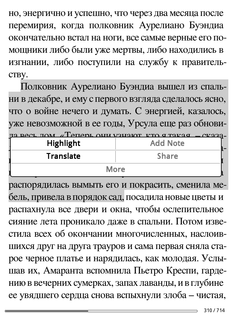 But there is a strange thing: highlight menu appears when I select few words from the book and it doesn't appears when I select single word. ![]() The menu has only two active items: "Highlight" and "Translate". |