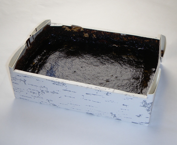 Warm egg-buttered Karelian pie. Rye crust, filled with rice.