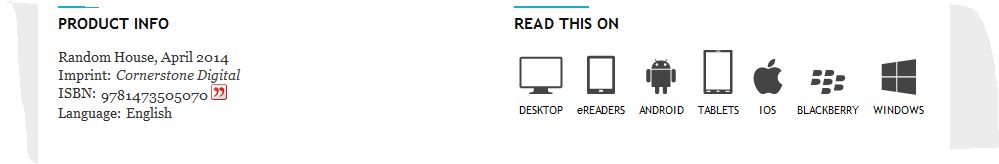 Cornerstone Digital (they're an imprint of Random House) When people choose a book can they also look at the publishing details - they're on the bottom left of the same page where the book synopsis is. below is a pic showing the Leon pub details. Happy hunting ![]() Edit It obviously appears that the India sale is on Random House and their imprint publishers. So if anyone knows of anymore of their imprints can they please post them. Edit 2 When you look don't forget to make sure that you choose sort by price low to high (I know you all knew that!!!) Last edited by Lynx-lynx; 05-03-2014 at 09:08 PM. Reason: add the edits |