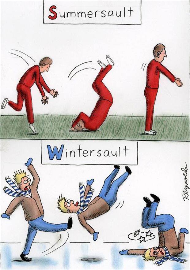 Yeah, when one gets over a certain age, and I'm well past that, one doesn't think about doing somersaults, but worry about doing wintersaults.
