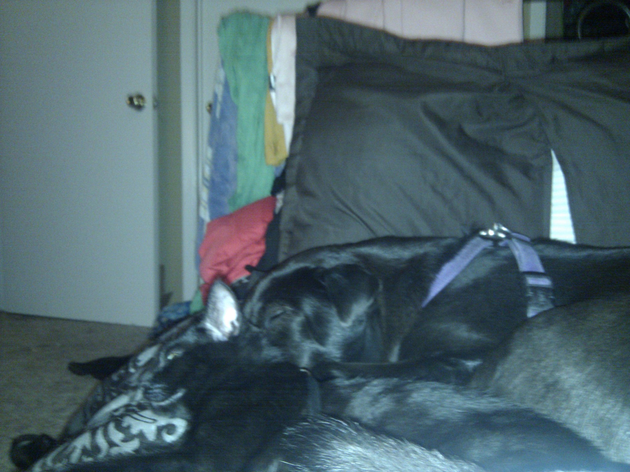 Or destroy the 7th pair of headphones. I have no idea why the only cords she's completely destroyed are headphones. Still, she's so cute when cuddling. In honor of such things. Here is an image of her curling up beside my sweet and even more awesome dog :-) Last edited by anabolina; 07-21-2011 at 11:33 AM. |