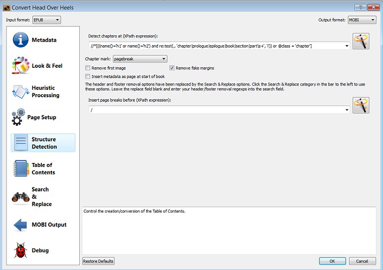 the crashing problem arises from settings in structure detection, specifically "insert metadata at start of book." Variations with it checked, never opened on the fire without crashing. Variations with it not checked, worked with no problem. for those that like AZW3, checked or not resulted in the book opening with no problems. Does this apply to all calibre created mobi files? Probably not, as I have several that have metadata inserted at the beginning and that work just fine on the fire. But, if I have problem with a file, I would try re-doing the conversion without insert metadata. I'd also try to avoid additional variables by removing the problem file from the device and deleting the mobi file from calibre. Then convert, and send the new mobi to the fire. Hope this helps Sasssysweeet and others with problems. |