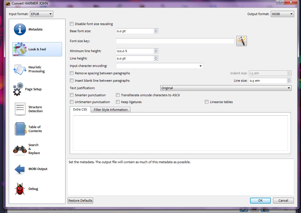 Here are the settings for my Calibre. Other then using a different profile all other settings are default. |