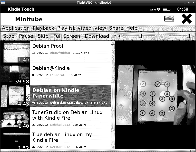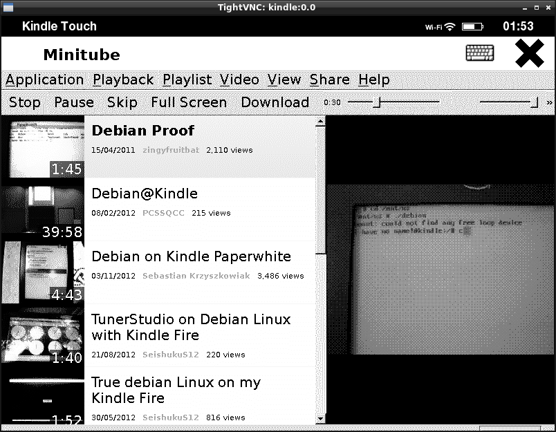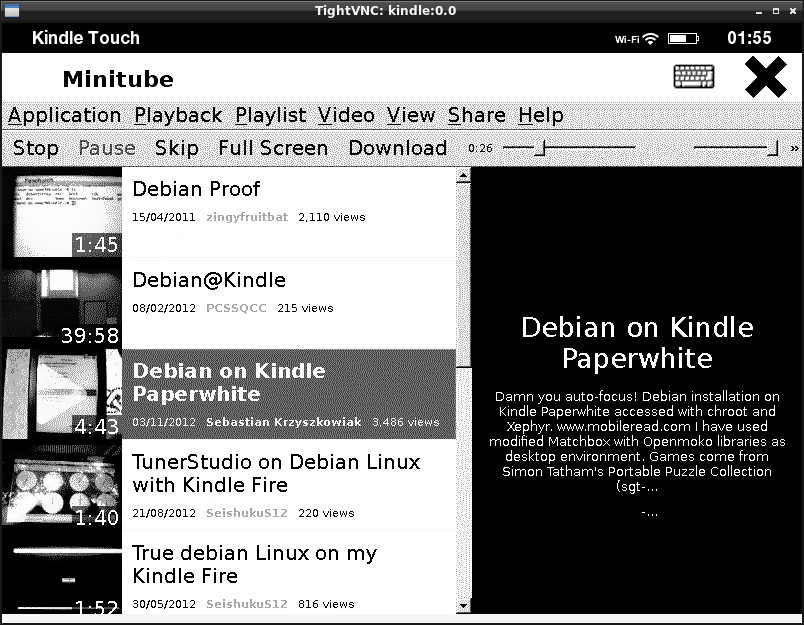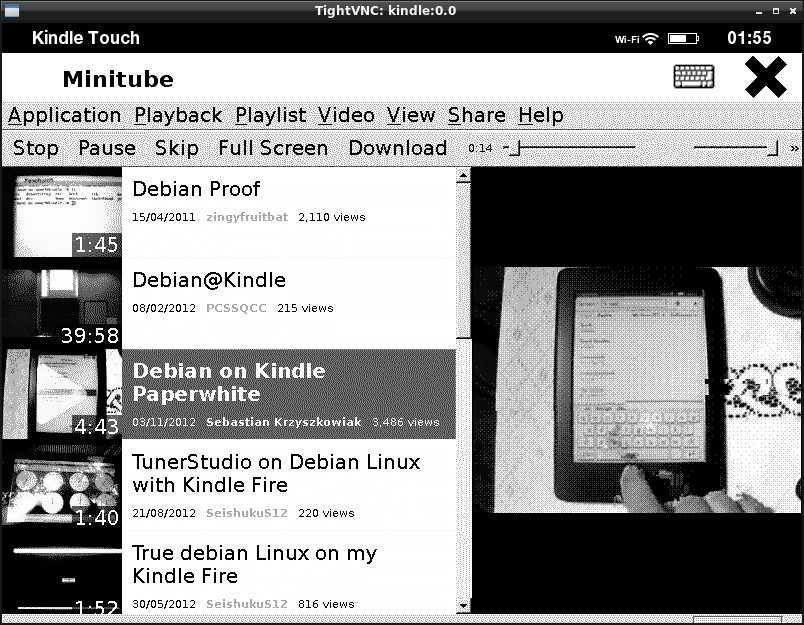 Okay just so we are 100% clear - minitube doesn't run "well". all manner of artefacts, hangs, needs some serious love and patience just to play the most basic of clips "badly". I had completely wiped my debian in readiness for the next set of tests but given your question I will run minitube back in and have another look what exactly I did. apologies for not being a bit more forthcoming last night as I say time was short. So - To recap: It REALLY needs so eink target love it is ever going to run without horror-story graphics. How are you at maths? GM and Hawhill have both posted solutions to the issue - one of which (or something similar) - needs integrating in the minitube build. Last edited by twobob; 11-15-2012 at 09:49 AM. Reason: recap |