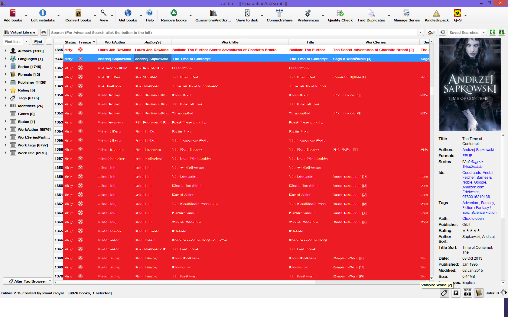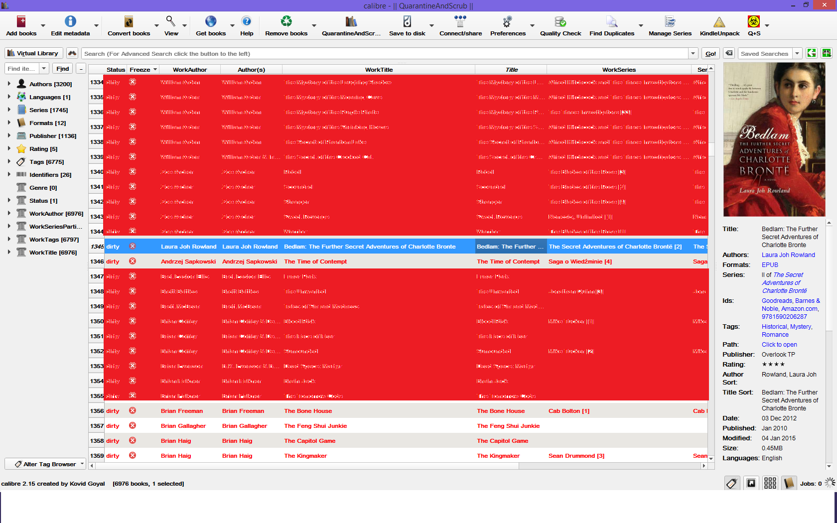 Please run the "After Version Upgrade" job first thing, as there have been database changes for this release. Also, it is very important that "good", "valid" Real Authors in Q&S be copied to the Pristine Author validation table using the menu selection at the bottom of the main Q&S menu. Pristine and Global Authors are used to sniff out Authors not where they belong, so as you acquire new books with new Authors, and they are "valid" Real Authors even before you scrub the books, it is best to copy them to the validation tables before scrubbing in order to achieve the benefits of having them available. Of course, garbage/malformed Real Authors are not really Authors, so don't copy them to the validation table; that would make Q&S treat garbage as valid, the opposite of what we want. DaltonST |