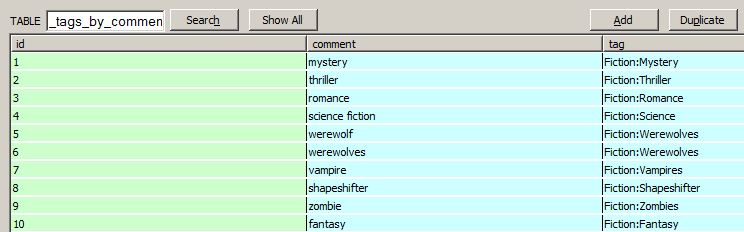 This time-saving feature runs the Tag Rules Table “oldtags” through the Calibre Comments Table, searching for simple matches. When if finds a match, it uses the “oldtag” as the Comment and the “newtag” as the Tag for new entries it puts into table _tags_by_comment_candidates. After you review those candidate entries (and delete or change those you don't like), it then moves them to the real _tags_by_comment table. The Book Level Tag Scrubber uses that table, as does Book Level Scrubbing itself. This makes it easy to derive new Work Tags using your own Tag Rules with your own library’s book Comments. As always, please first run the "After Version Upgrade" job, since this new feature adds one new table and one new view that have to be created before you can use them. DaltonST |