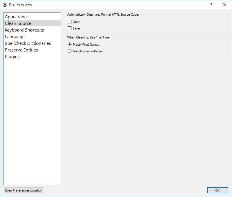 Preferences - Clean Source widget