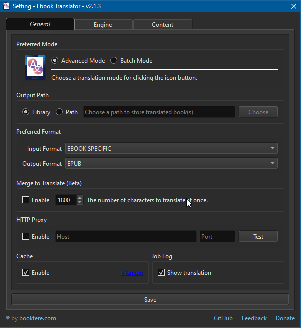 ----------------------------------- Error: Failed to retrieve data from translate engine API. Can not parse returned response. Raw data: Traceback (most recent call last): File "calibre_plugins.ebook_translator.engines.base", line 171, in get_result File "mechanize\_mechanize.py", line 257, in open File "mechanize\_mechanize.py", line 313, in _mech_open mechanize._response.get_seek_wrapper_class.<locals>.httperror_seek_wrapper: HTTP Error 400: Bad Request ============================== Traceback (most recent call last): File "runpy.py", line 196, in _run_module_as_main File "runpy.py", line 86, in _run_code File "site.py", line 83, in <module> File "site.py", line 78, in main File "site.py", line 50, in run_entry_point File "calibre\utils\ipc\worker.py", line 215, in main File "calibre\utils\ipc\worker.py", line 150, in arbitrary_n File "calibre_plugins.ebook_translator.lib.conversion", line 108, in convert_book File "calibre\ebooks\conversion\plumber.py", line 1281, in run File "calibre_plugins.ebook_translator.lib.conversion", line 99, in convert File "calibre_plugins.ebook_translator.lib.translation", line 246, in handle Exception: Translation failed. |
