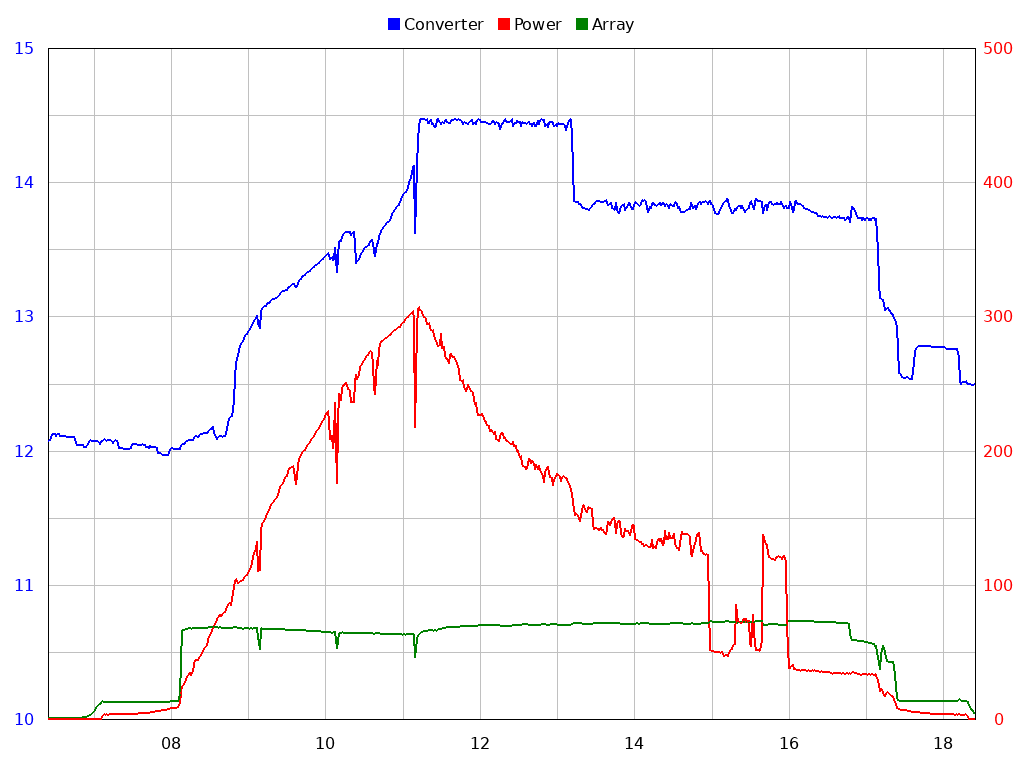 Well, the internal measurement is reading a bit low, but the battery itself is generally pretty low. Anyway, it always starts. And if it didn't, I could just switch in my "house" battery which is always nicely charged on solar. Today, for instance: