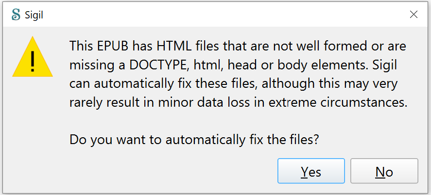 "Sigil's Mend tool to automatically fixed these errors or omissions.");