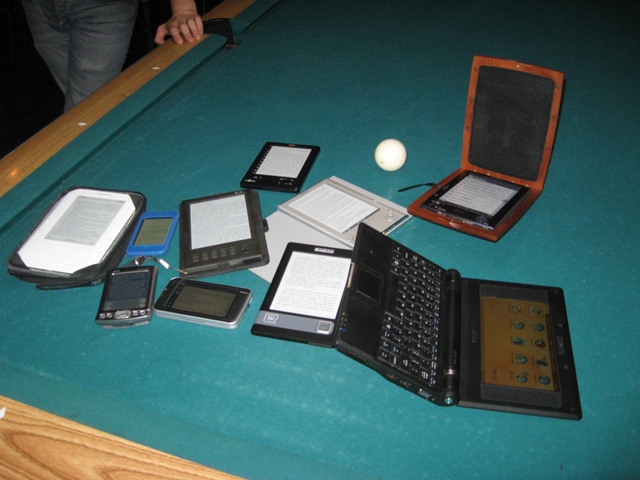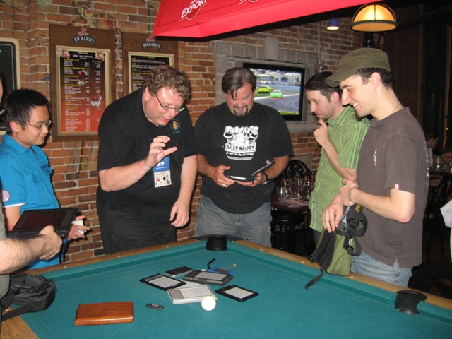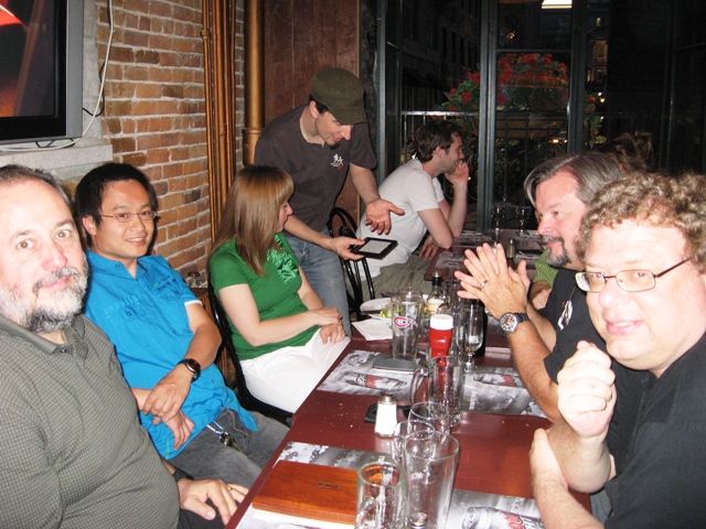 I would have liked it for us to be more members present there but fortunately being so few allowed us to have better conversations. P-shrynk, as he says should be pronounced, is amazingly bright, learned and loads of fun to be around with. Distance is cruel... Tompe is a force of nature, curious, intelligent, learned, quite eloquent and communicative beyond our language barriers, an other guy I'd spend hours with. DanT is also curious and quick but so shy and quiet, we didn't have enough time to develop something. Ziguezon and his lovely wife were at the other end of the table and we had so few moments together that I feel we should get together again just to chat. Quickhand is the Mobile Read geek by excellence, by himself he had half of the devices on the table. Now that is amazing since in Quebec only the Bookeen Gen3 is officially available. He also had a prototype of a reader that was... I'll say steampunked. It was so cool I wanted to tear up the ol' 500 apart to do somethig similar with it. An other totally interesting guy. And then there was VCat, that charming young lady, so shy herself and so happy for that special encounter that even as I am her father, I had difficulty understanding why the usual chatterbox was so quiet. ![]() To you all that were there, thank you for sharing that brief moment, I wish there will be more! ![]() I know I promised live pictures and comments from the discussion but as I found out the wifi link at the place where we were seated was so weak and impossible to manage that I selfishly decided to enjoy the most of what was possible; the enjoyment of great company! The movies I took were of an incompatible format for MR, and of shoddy cinematographic quality, so I won't bother trying to post them. The pictures were not great either Cat's were much clearer. But still here's one of a precious pile of junk. (Note to oneself: "Turn on the damned flash once in a while!" )Oh, by the way, I'm the smiling gray seal on the left. Looking forward to the next meeting. I know what to do next and I promise it will be better. Yvan Last edited by yvanleterrible; 07-29-2010 at 12:39 AM. |
