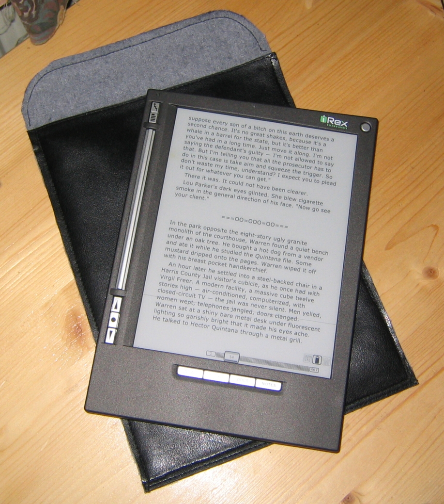 Mine arrived this morning. I was surprised because I was not expecting it for another 5 days and had received no email from UPS. The first thing I did was to re-charge the battery. After about 30 mins I didn't notice any change in the battery symbol - it still looked empty. But when I changed to another page the symbol appeared full. I nervously played around with it for a few hours. I experimented by loading various PDF's I had created onto a compact flash card to see what size font suited me best. I decided Verdana at size 14pt gave me the most comfortable reading experience for my eyesight. The screen is a most beautiful thing - I absolutely love it. The device came with version 2.4 on it and I knew I would have to connect it via iDS and update to the latest version. But I was very hesitant about this (I am a coward) and decided instead to go shopping to see if I could find myself a case for it. I couldn't find a suitable case so I came back home and cut up an old leather handbag and stitched a very basic envelope shape for it on my sewing machine. It aint bad even if I say so myself. Not feeling able to put off updating the software any longer I read the instructions several times but still felt unsure about it. I have a Belkin wireless router but after reading dire warnings about connecting wirelessly in this forum I nervously connected a cat5 cable to my router and to the iLiad. Pressed the connect button for 2 seconds and lo and behold the new software downloaded to 100% very quickly. Once finished downloading the iLian switched itself off. I turned it back on and the new software then installed itself (very slowly I must add) and now I have version 2.6 on the device. I don't want to jinx myself but all in all I am a very happy bunny. |