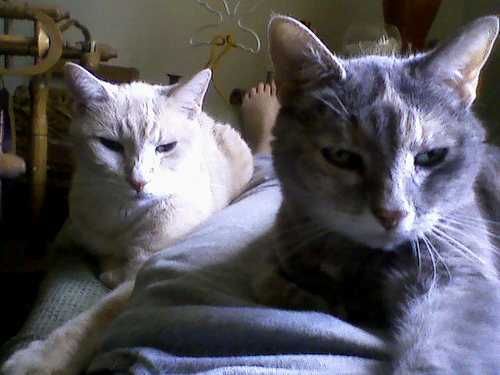 Wait a minute! I just noticed the foot! That happens to my wife with the cat on the edge of the bed, and the Shih-Tzu on the other side by her feet. |